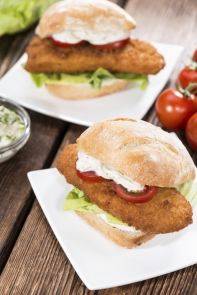 For the sandwich, place the flour, egg and breadcrumbs on their own plates. Season the flour if required then use it to coat each of the salmon fillets. Dip each coated fillet in the egg and then roll in the breadcrumbs. Grill the fillets for 3-4 minutes each side before placing on the fresh bread, garnishing with the lettuce and topping off with tartar sauce.